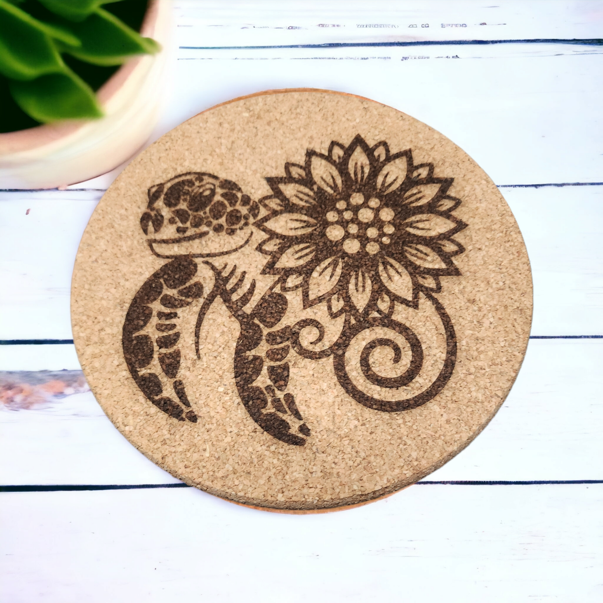 Girasol de tortuga marina - Salvamanteles de corcho grabados de 7 pulgadas, almohadilla térmica, posavasos