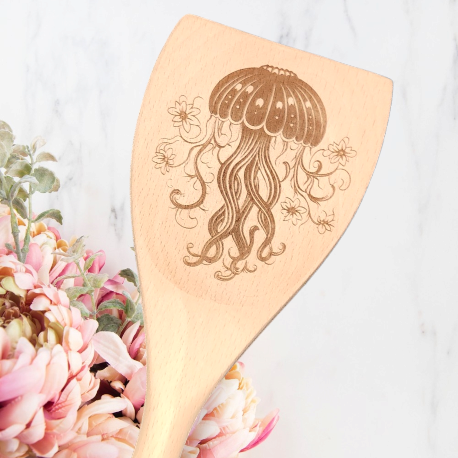 Cucharas de Cocina de Madera Grabadas - Tropical - Medusas