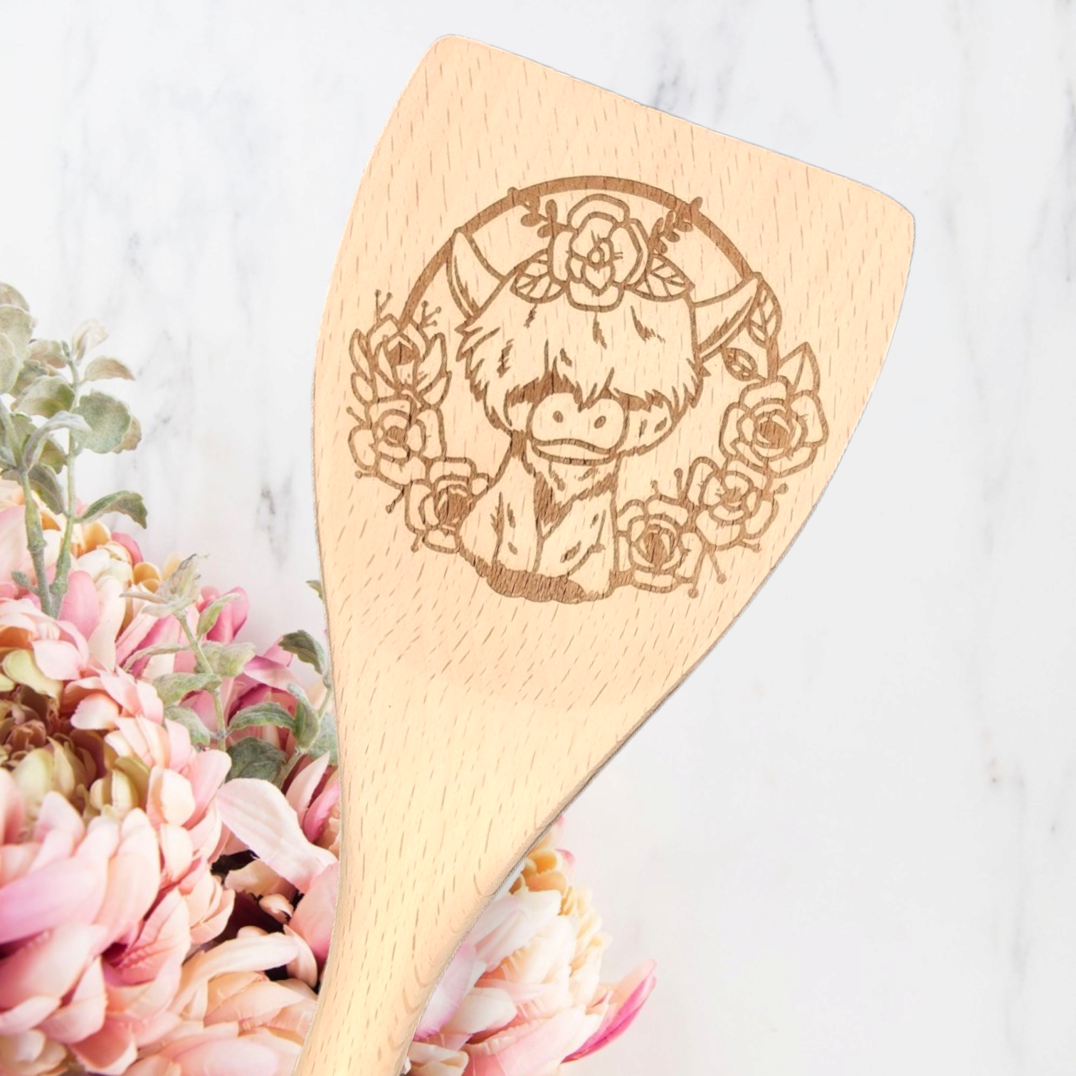 Cucharas de cocina de madera grabadas - Granja - Linda vaca de las Tierras Altas