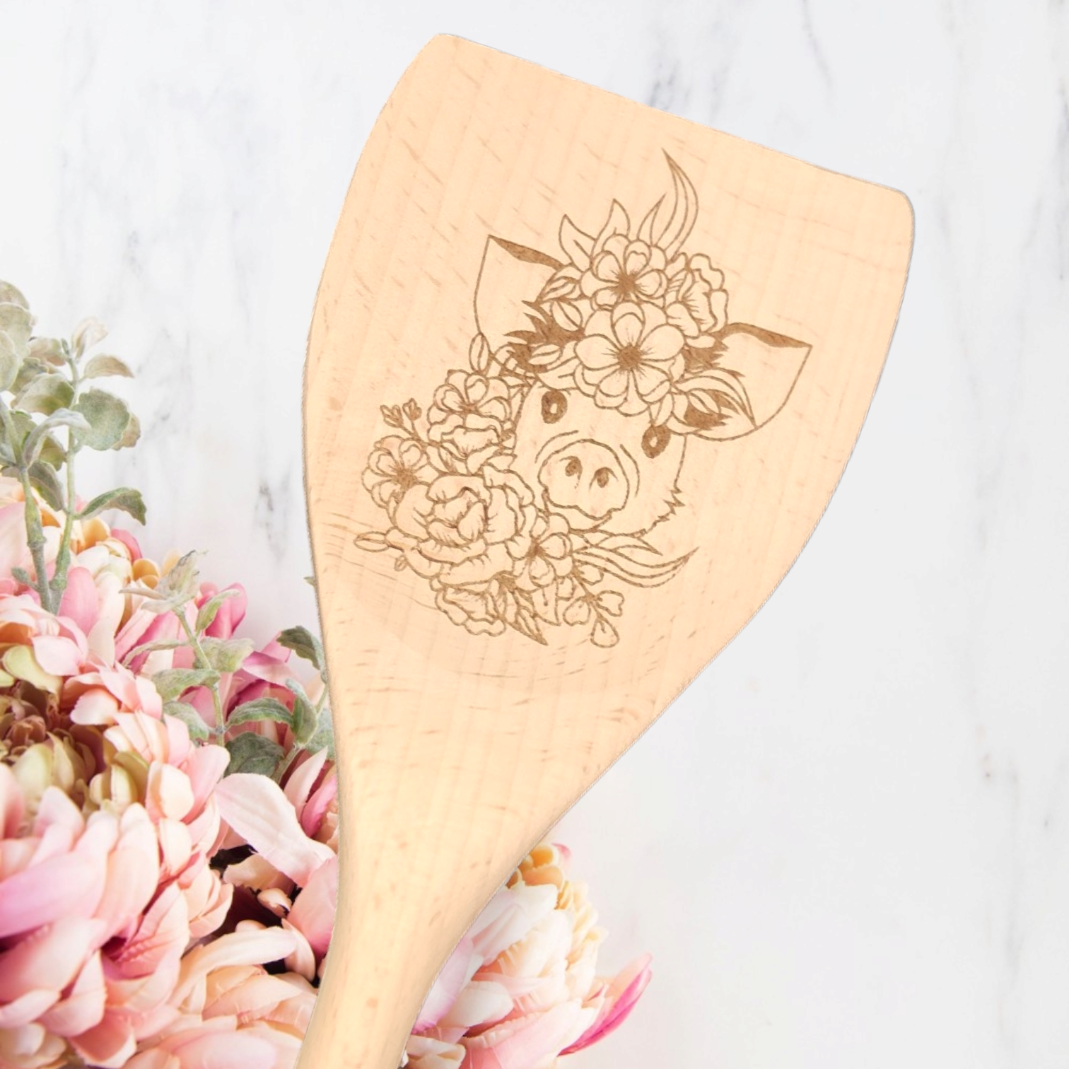 Cucharas de Cocina de Madera Grabadas - Granja - Cerdo
