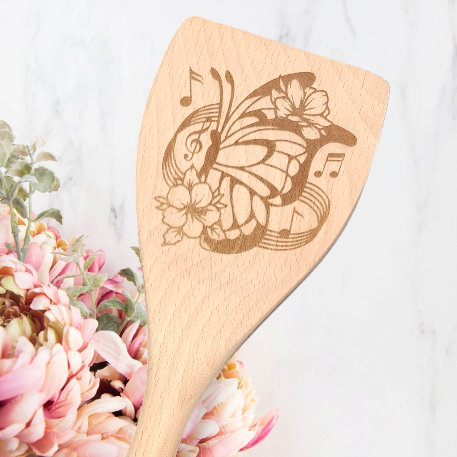 Cucharas de Cocina de Madera Grabadas - Música de Mariposa