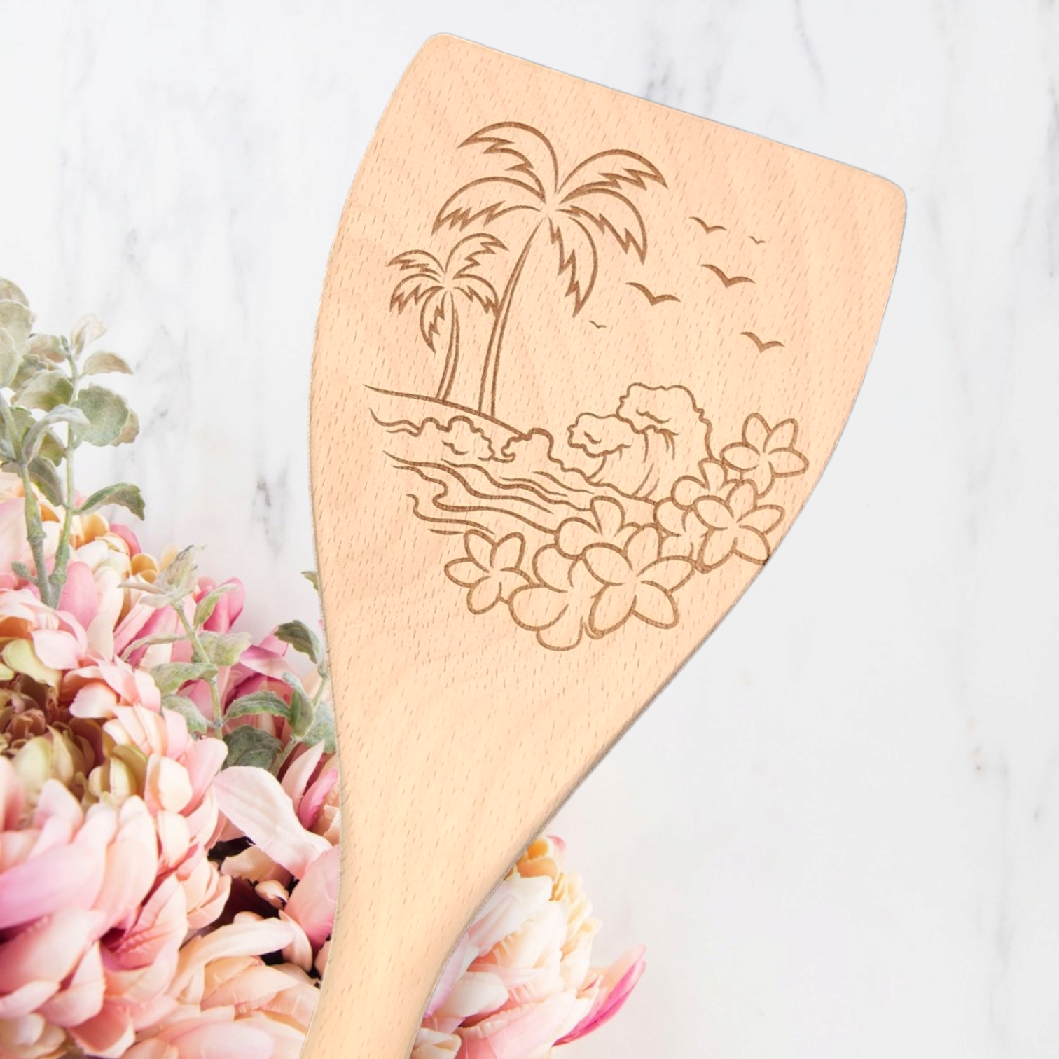 Cucharas de Cocina de Madera Grabadas - Tropical - Océano