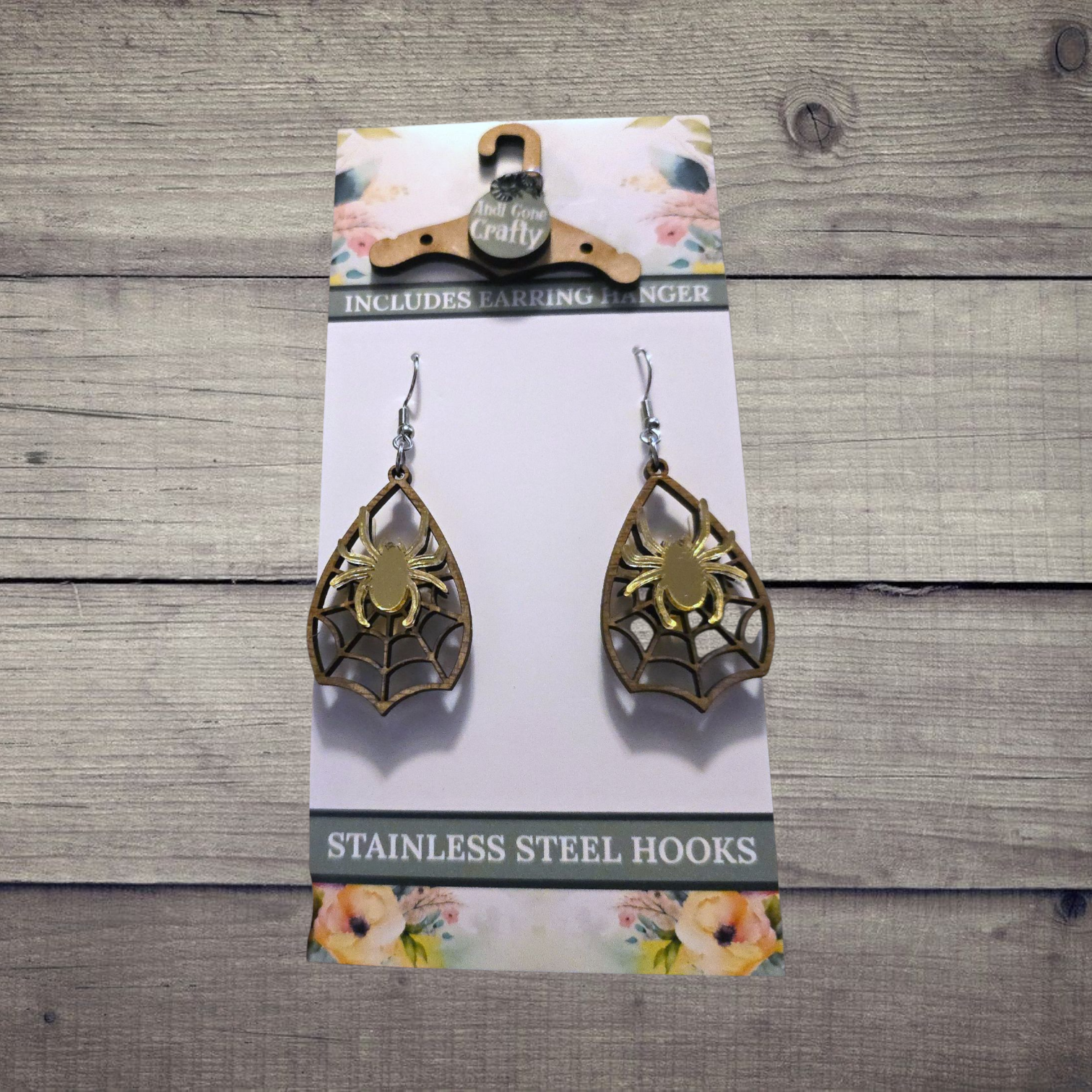 Spider - (Lightweight Wood and Stainless Steel Hooks) - Earring Number 300037