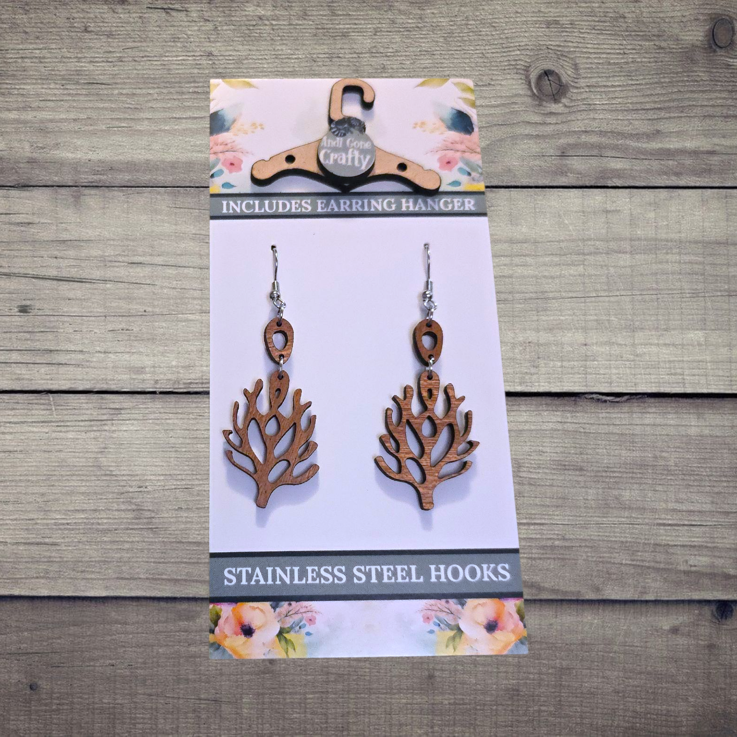 Coral - (Lightweight Wood and Stainless Steel Hooks) - Earring Number 300092
