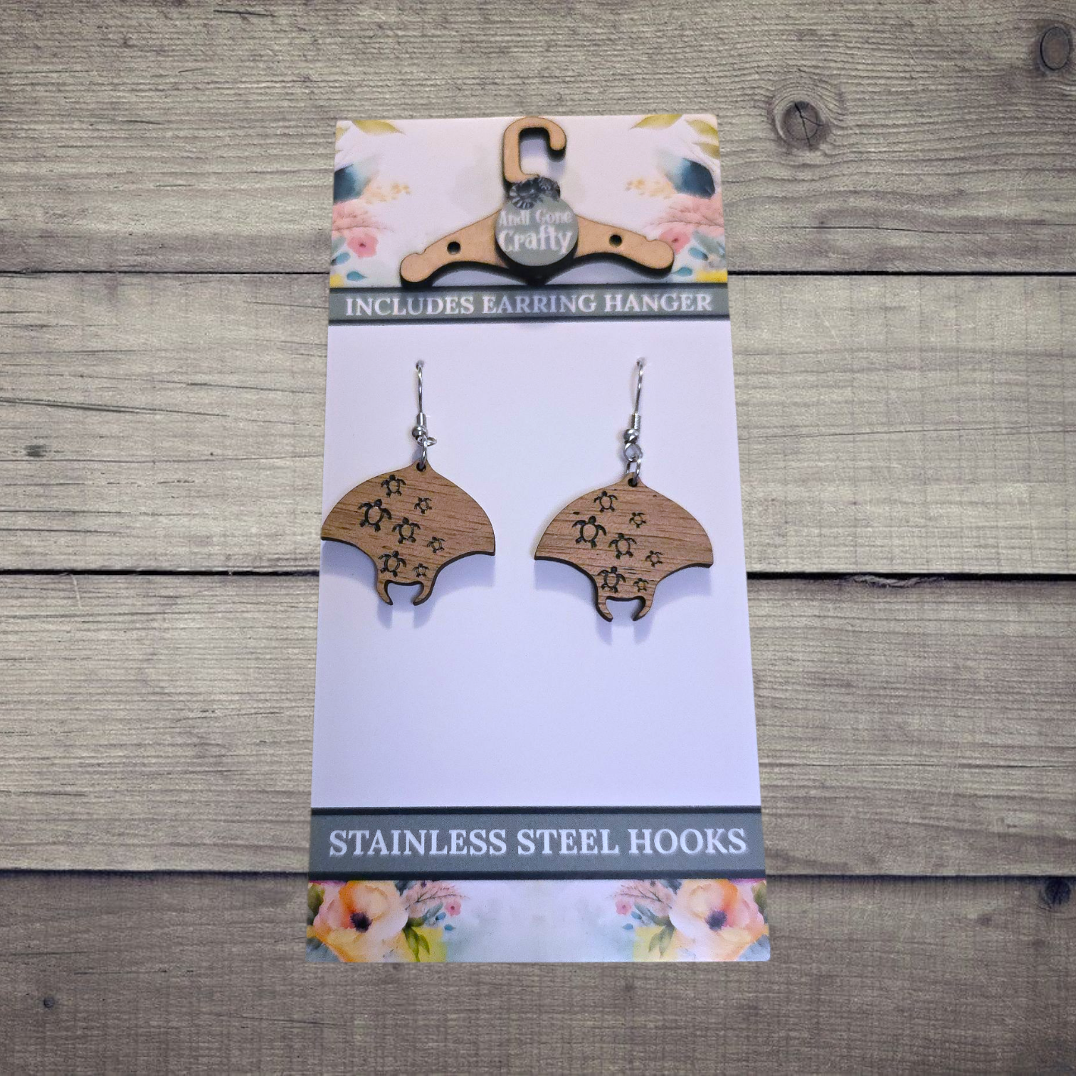 Stingray - (Lightweight Wood and Stainless Steel Hooks) - Earring Number 300169