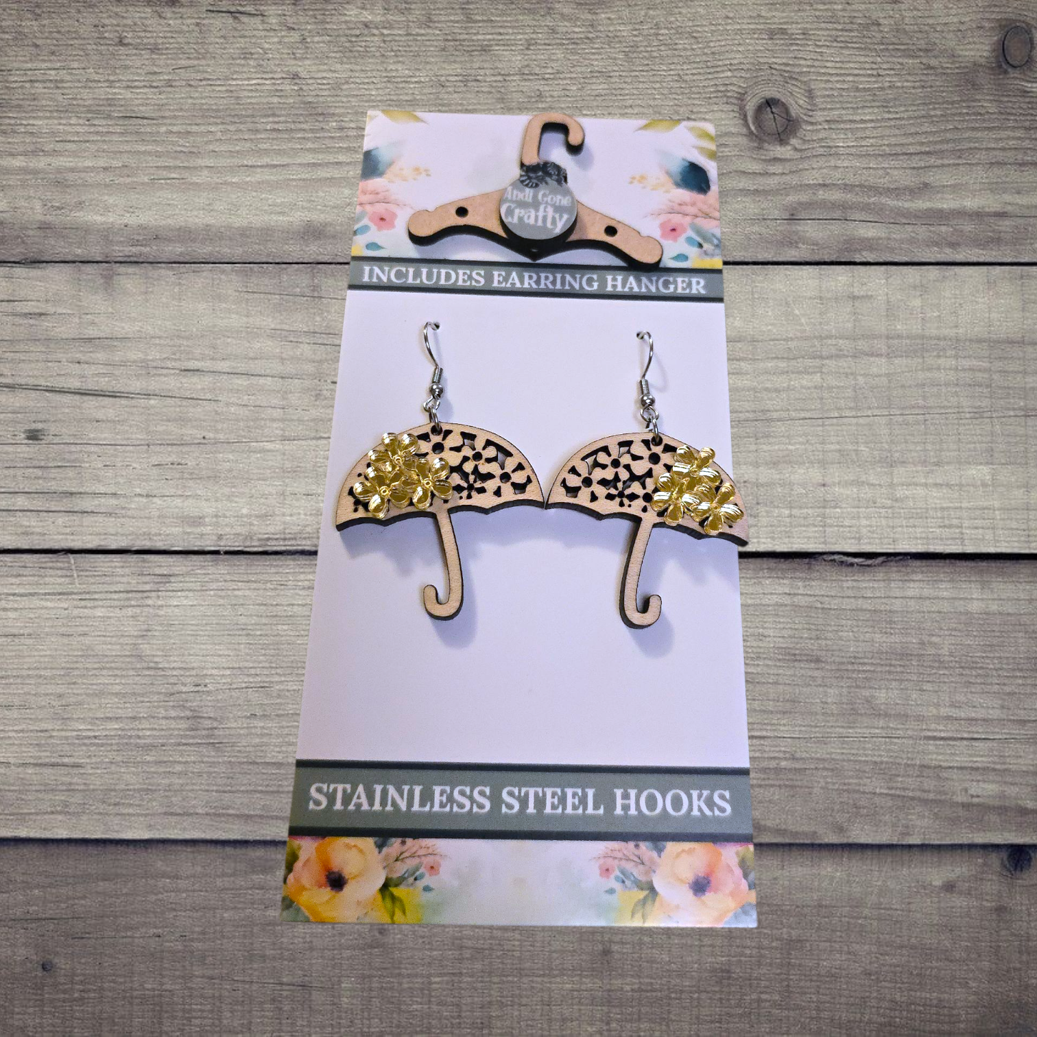 Umbrella - (Lightweight Wood and Stainless Steel Hooks) - Earring Number 300183