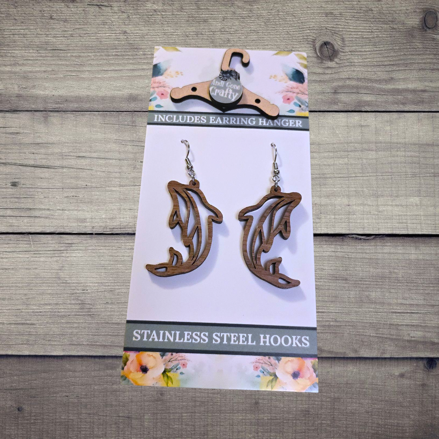 Dolphin - (Lightweight Wood and Stainless Steel Hooks) - Earring Number 300187