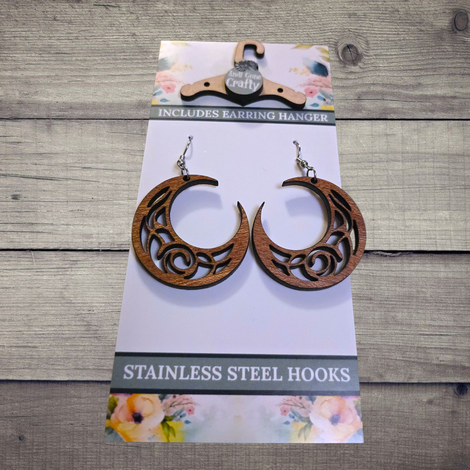 Moon - (Lightweight Wood and Stainless Steel Hooks) - Earring Number 300236