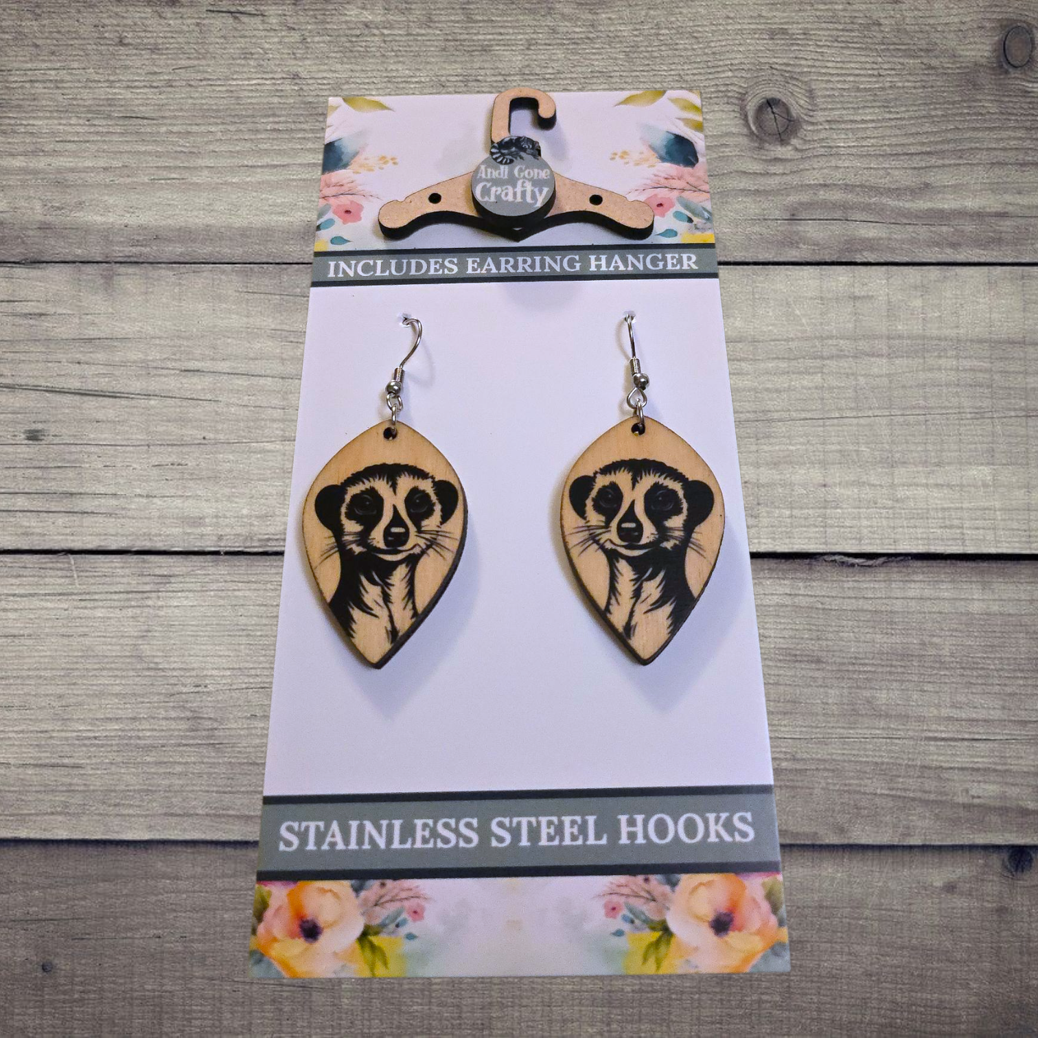 Meerkat - (Lightweight Wood and Stainless Steel Hooks) - Earring Number 300240