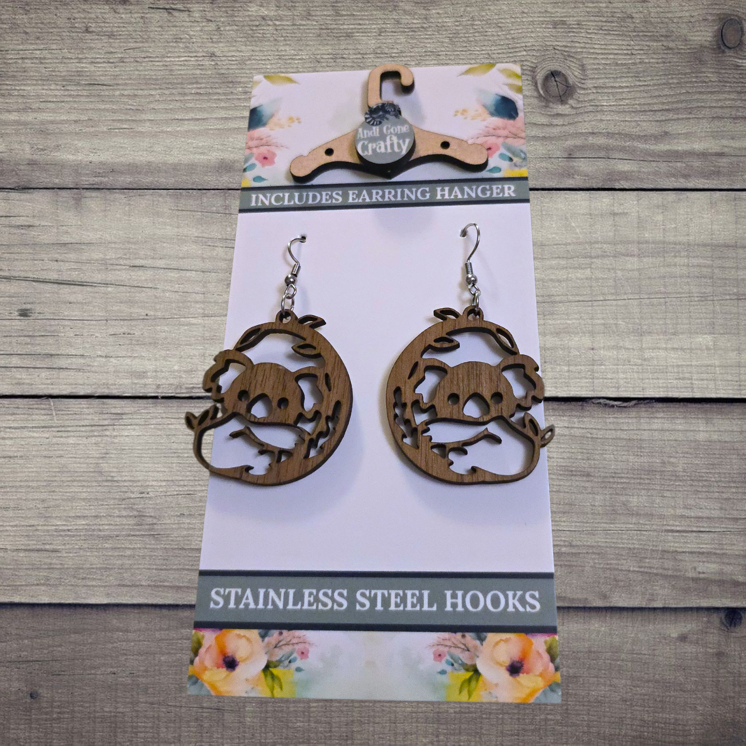 Koala - (Lightweight Wood and Stainless Steel Hooks) - Earring Number 300245
