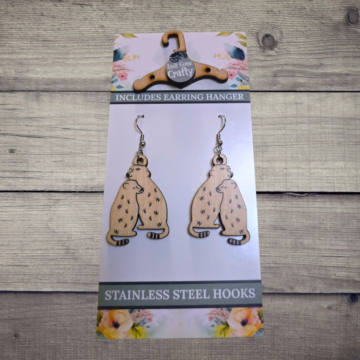 Meerkat - (Lightweight Wood and Stainless Steel Hooks) - Earring Number 300249