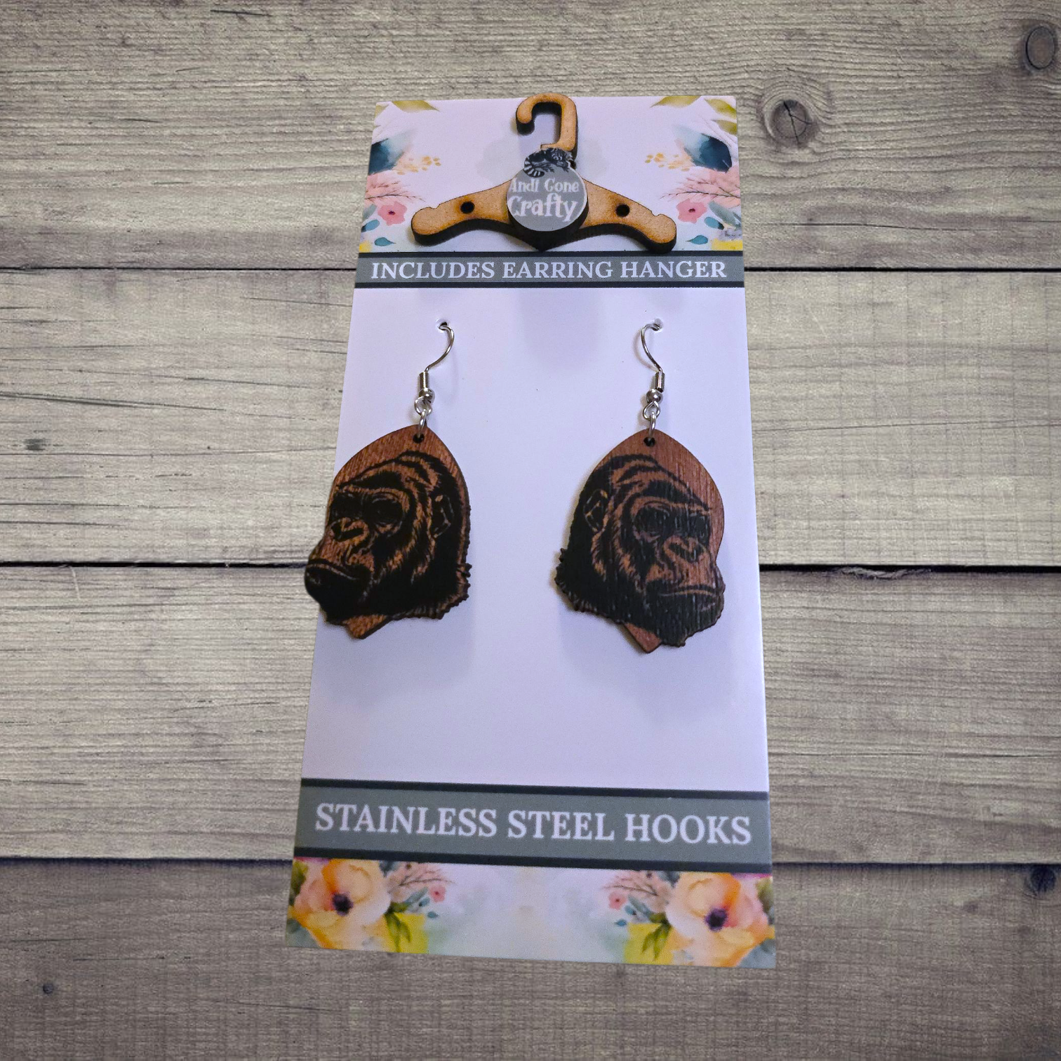 Gorilla - (Lightweight Wood and Stainless Steel Hooks) - Earring Number 300253