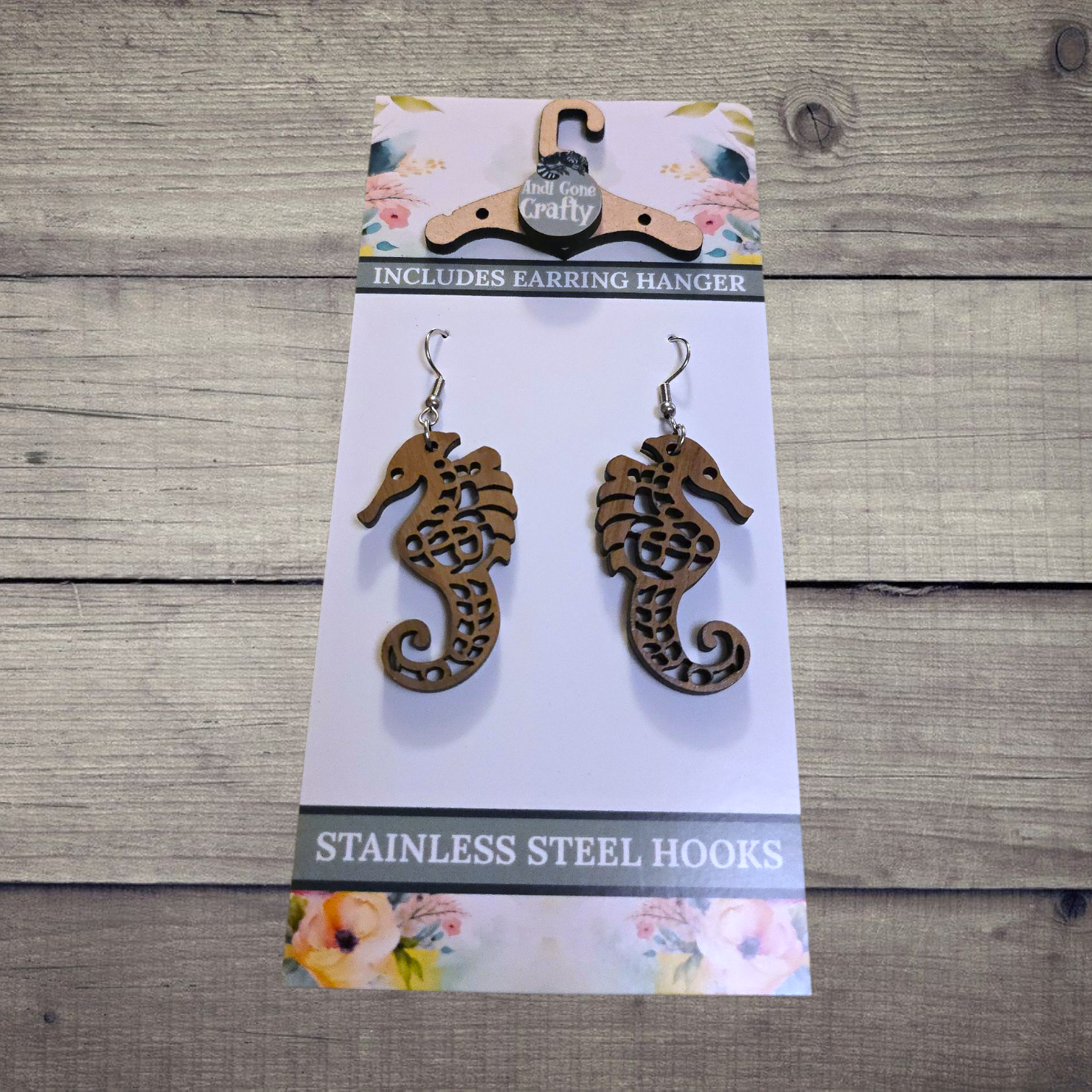 Sea Horse - (Lightweight Wood and Stainless Steel Hooks) - Earring Number 300268