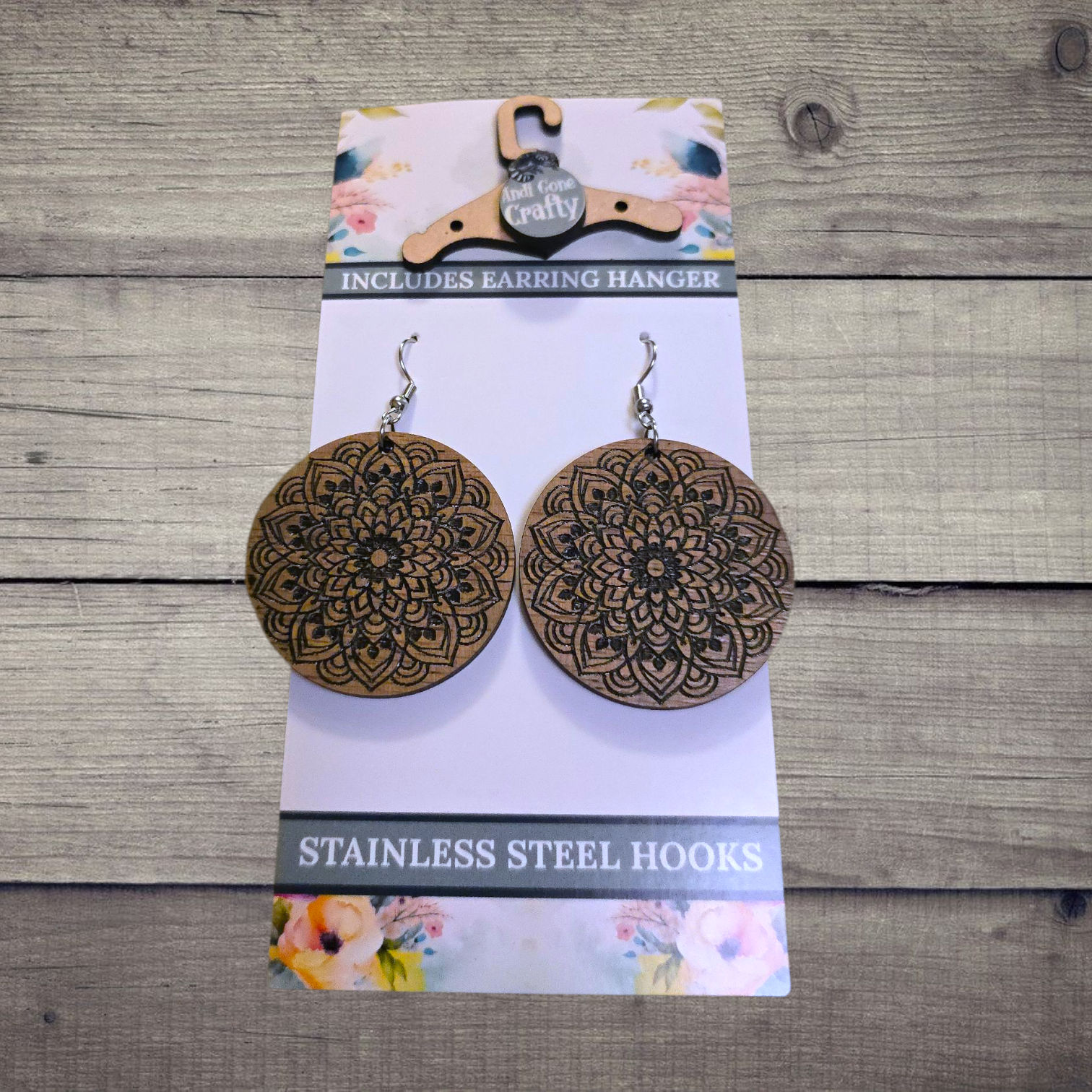 Mandala - (Lightweight Wood and Stainless Steel Hooks) - Earring Number 300339