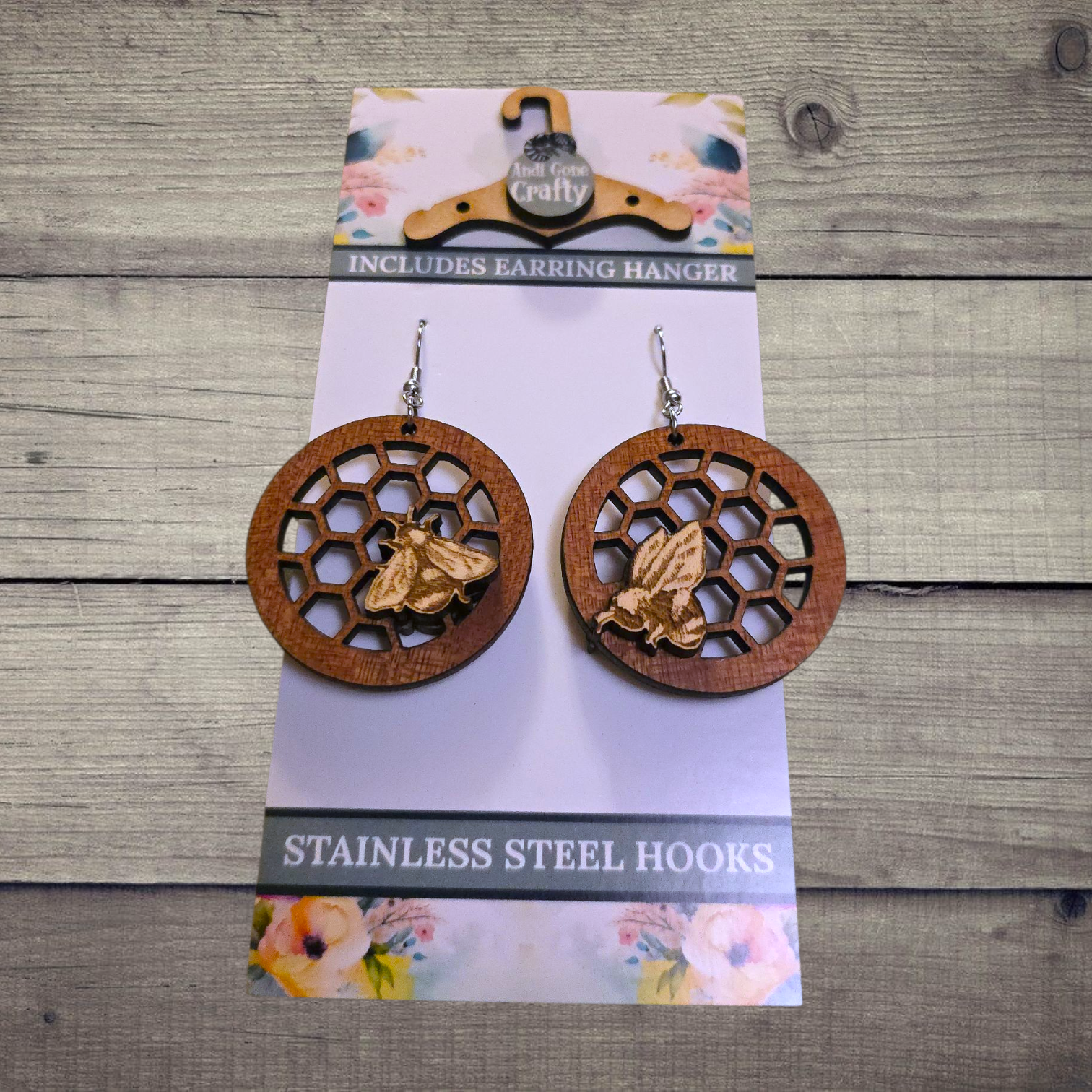 Bee - (Lightweight Wood and Stainless Steel Hooks) - Earring Number 300460