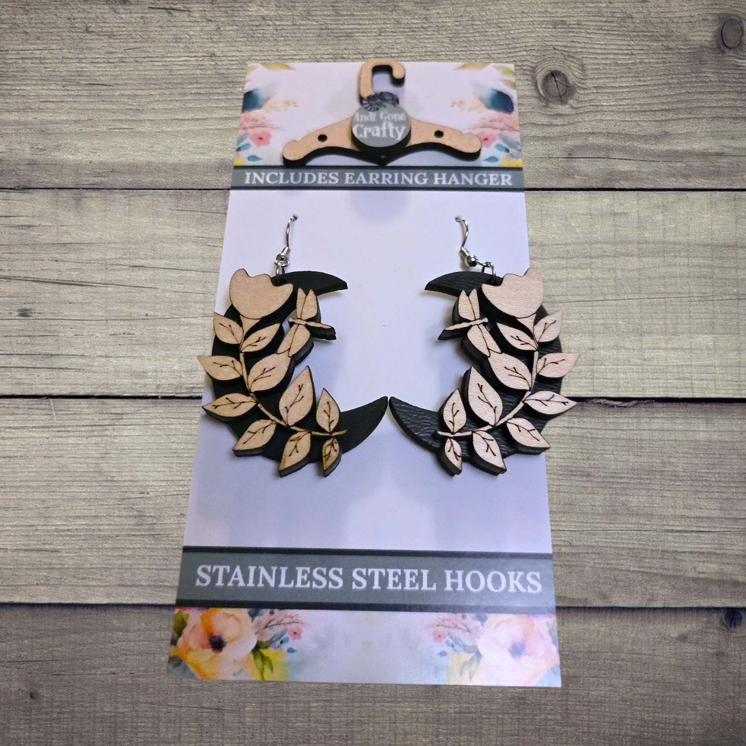 Moon - (Lightweight Wood and Stainless Steel Hooks) - Earring Number 300463