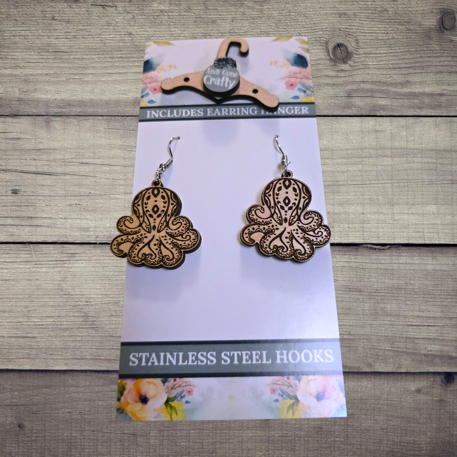 Octopus - (Lightweight Wood and Stainless Steel Hooks) - Earring Number 300475