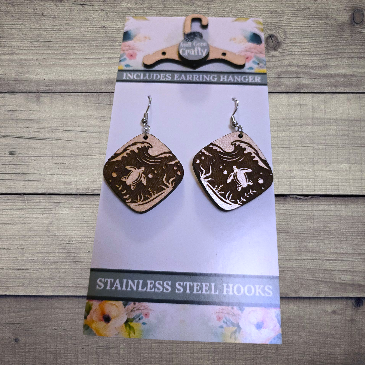 Sea Turtle - (Lightweight Wood and Stainless Steel Hooks) - Earring Number 300503