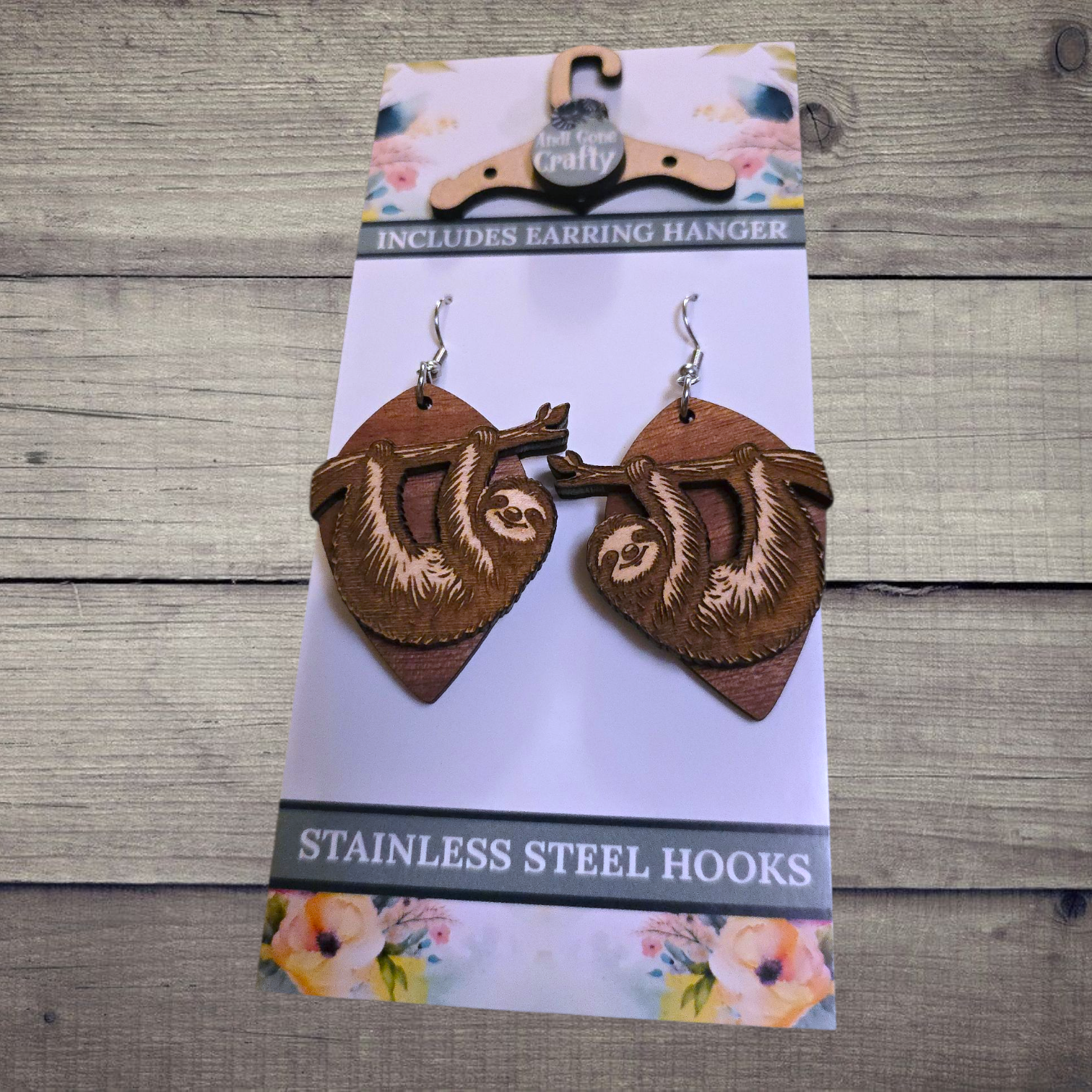 Sloth - (Lightweight Wood and Stainless Steel Hooks) - Earring Number 300527