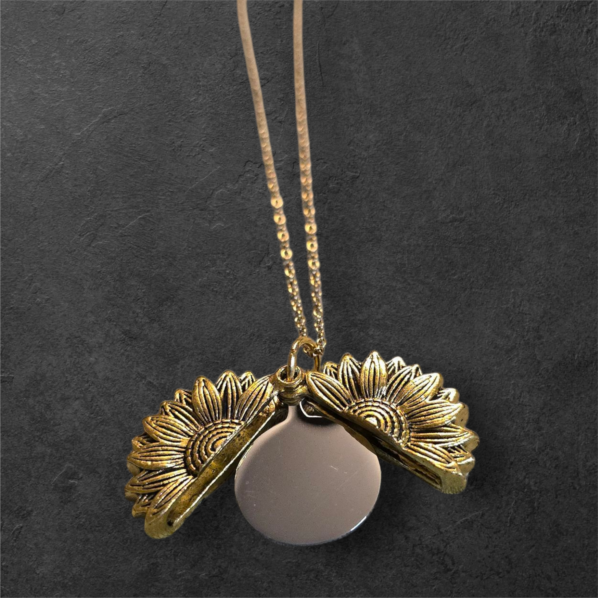 Sunflower Reveal Necklace - Ready to be Engraved - Premium Stainless Steel Piece #700031