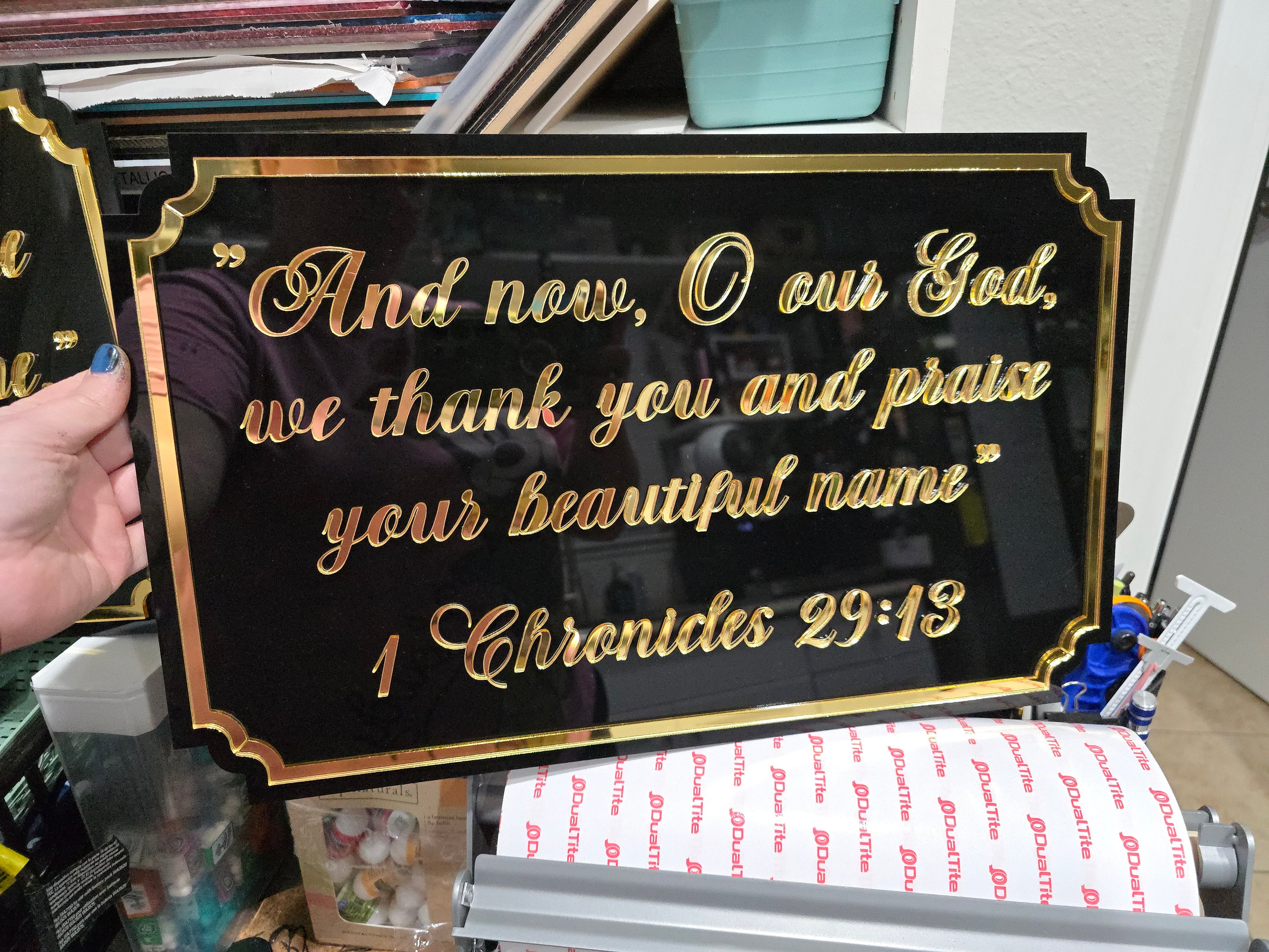 Have a Bible and would like your Name and Baptism Date. Or what about your Favorite Scripture. Reach out to schedule an engraving time slot.