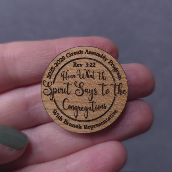 Hear what the spirit says to the congregation - 2025-2026 Assembly w/ branch rep - JW Pin - Cherry Wood