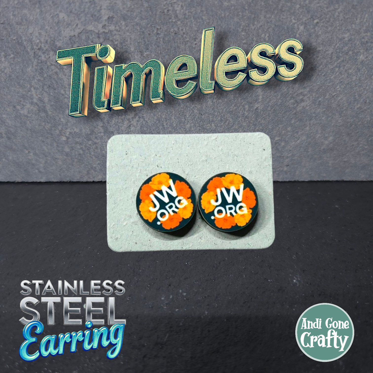 JW - JW.ORG Poppy Earrings - Stainless Steel Studs (Multiple Poppies - Dark Teal Background)