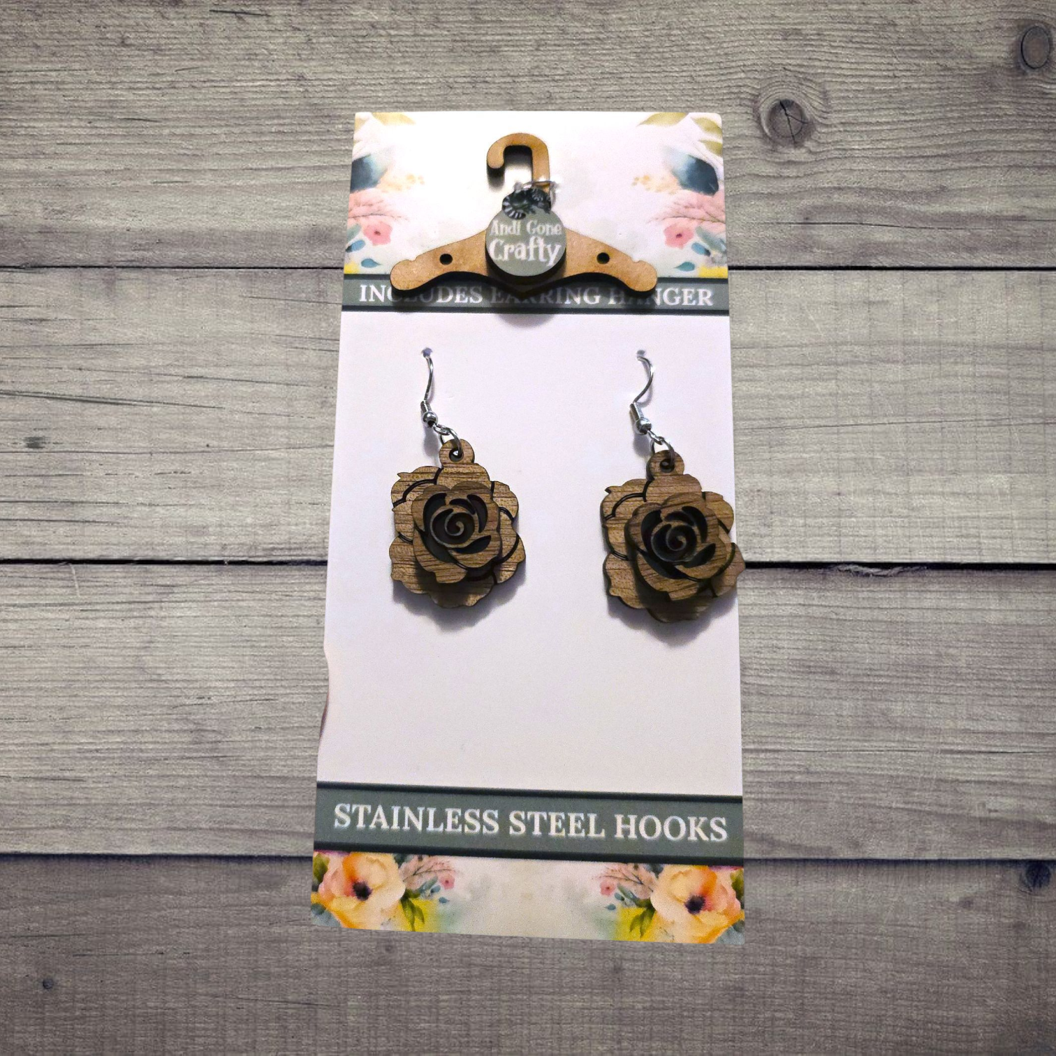 Flower - (Lightweight Wood and Stainless Steel Hooks) - Earring Number 300034