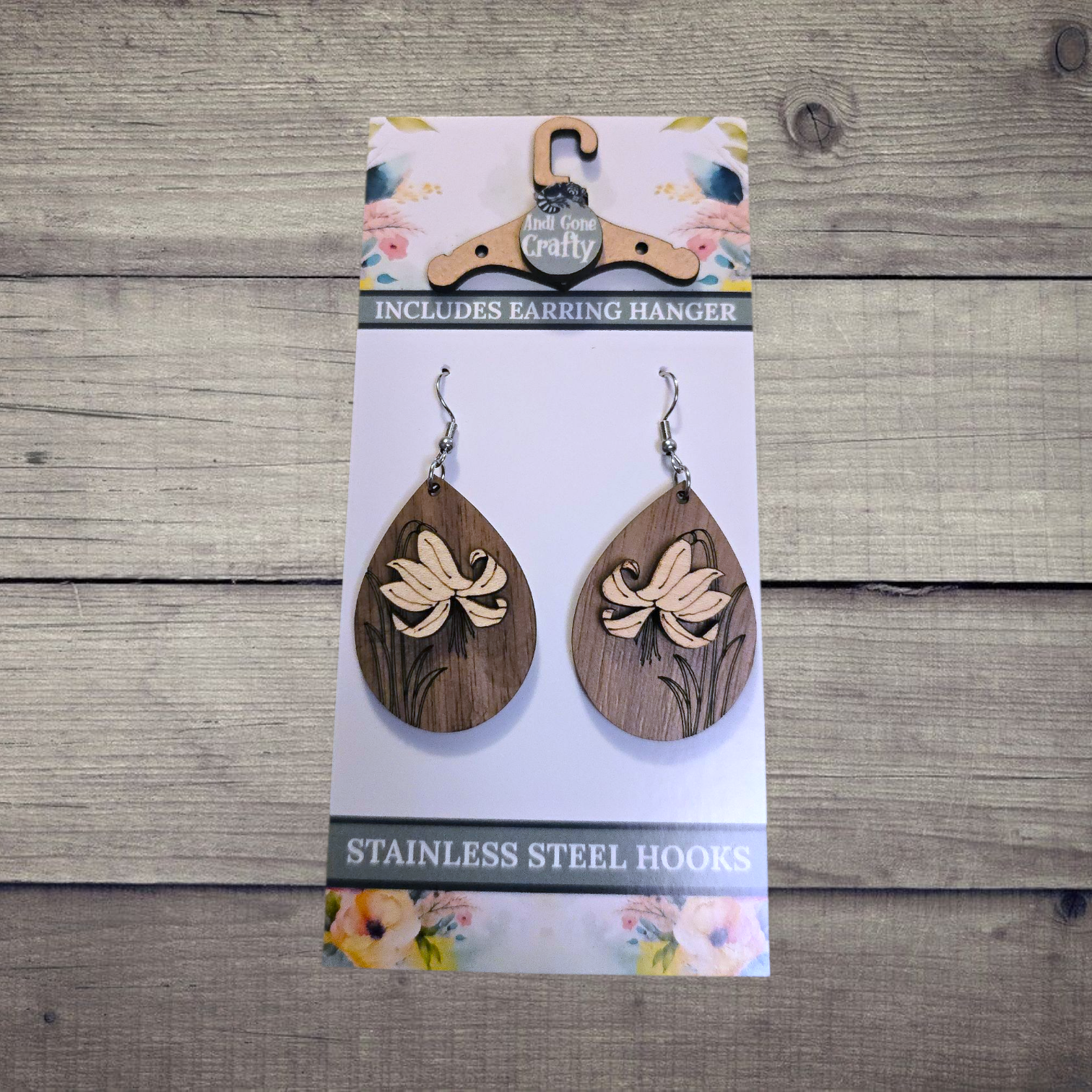 Flower - (Lightweight Wood and Stainless Steel Hooks) - Earring Number 300070