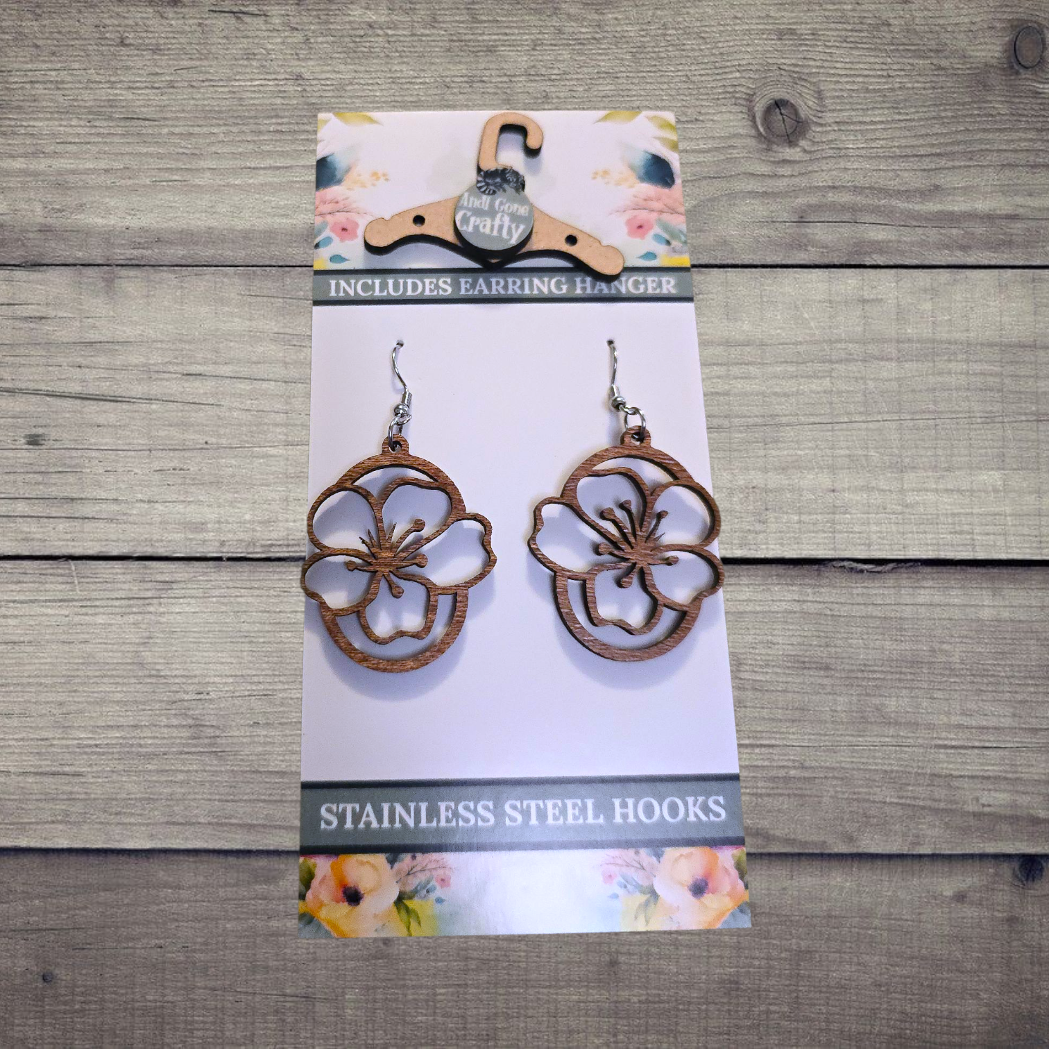 Flower - (Lightweight Wood and Stainless Steel Hooks) - Earring Number 300080