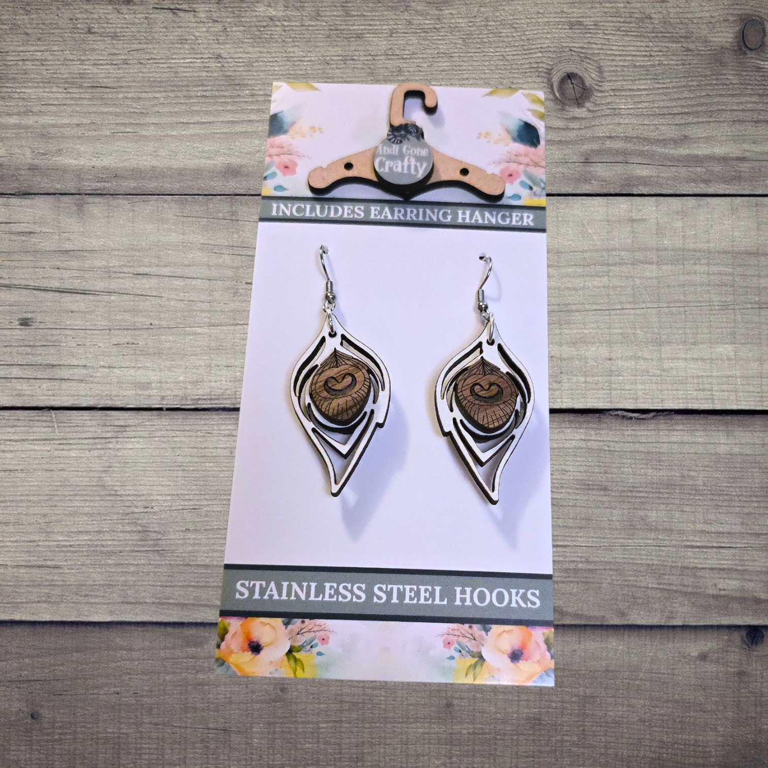 Feather - (Lightweight Wood and Stainless Steel Hooks) - Earring Number 300144