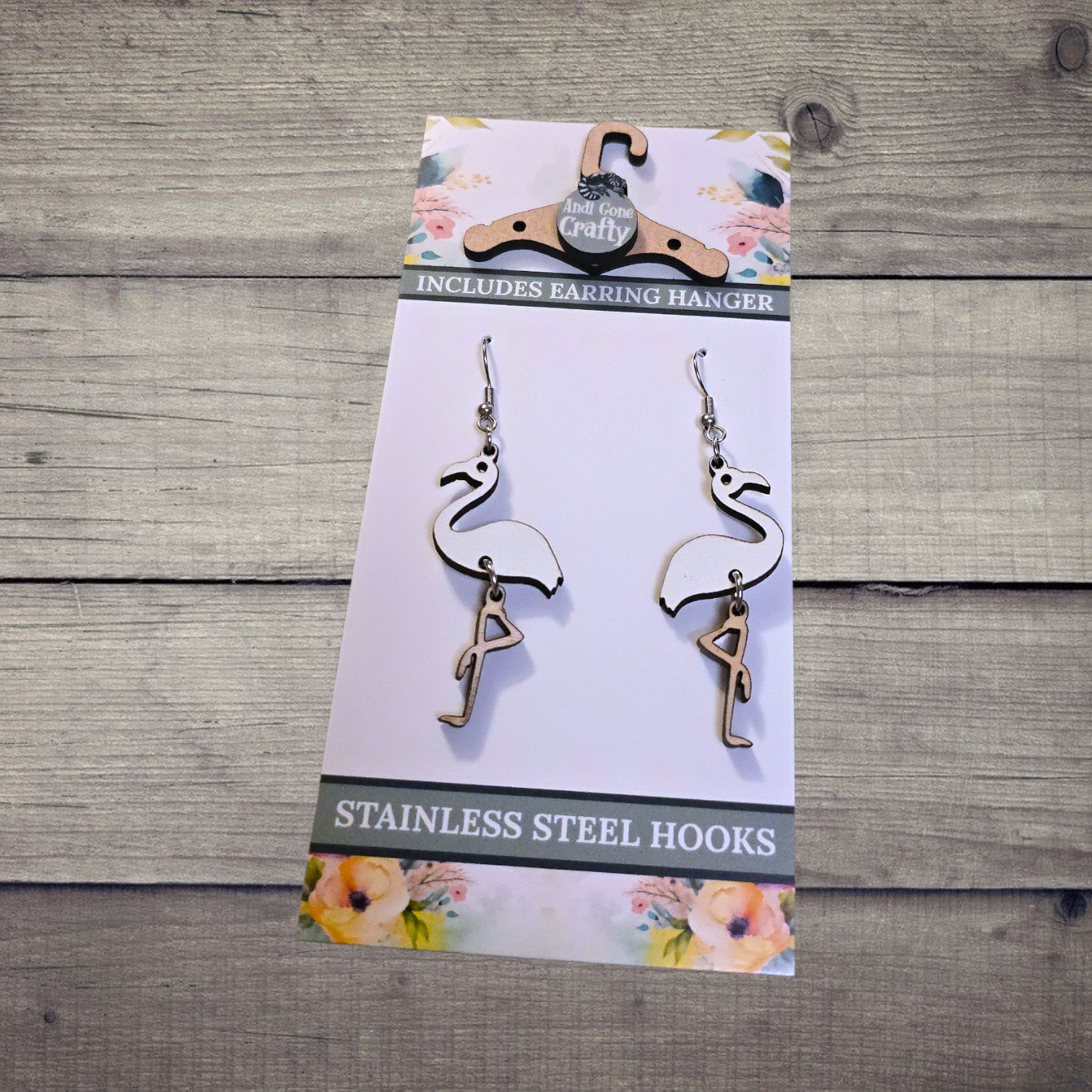 Egret - (Lightweight Wood and Stainless Steel Hooks) - Earring Number 300173