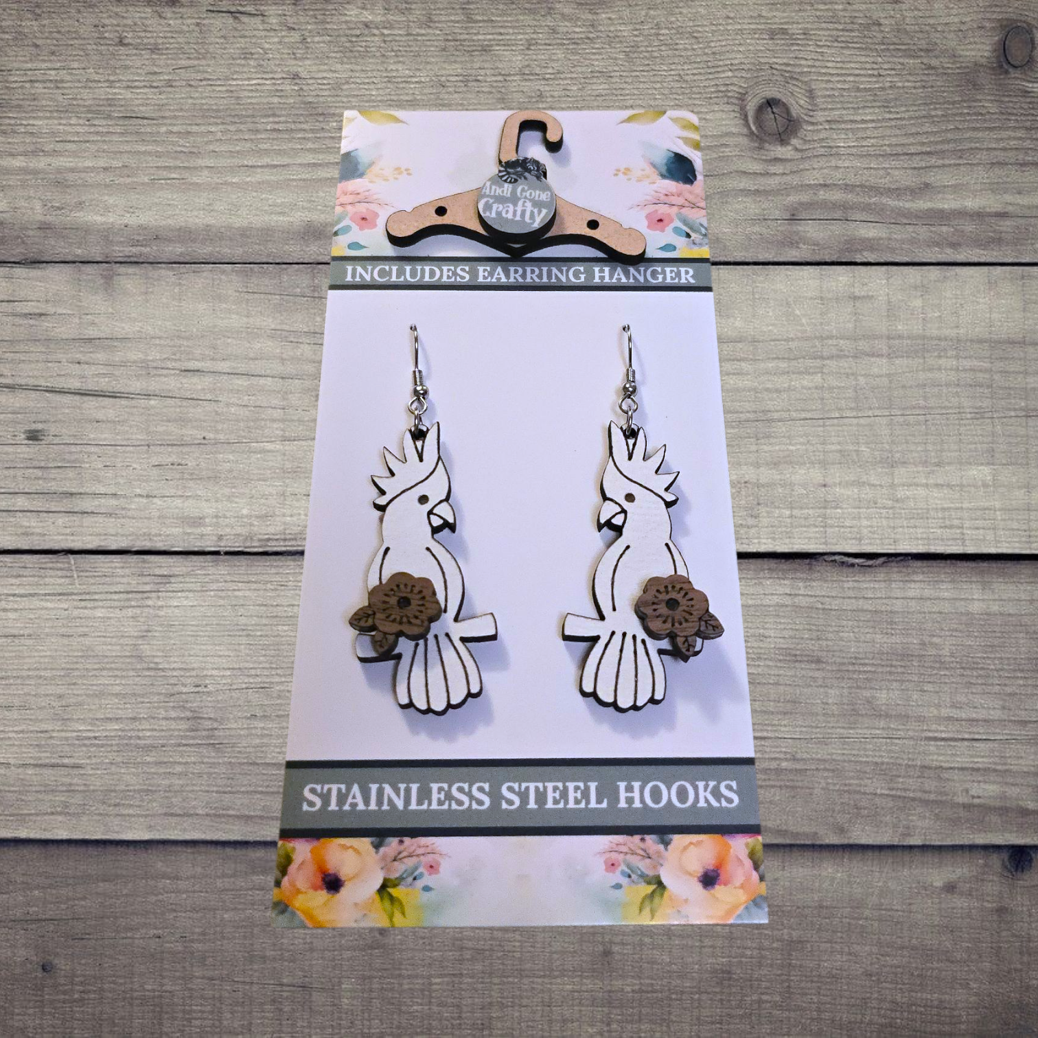 Cockatoo - (Lightweight Wood and Stainless Steel Hooks) - Earring Number 300195