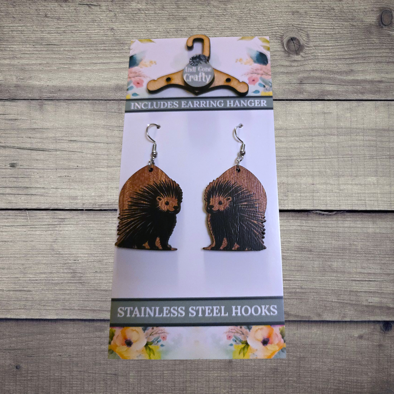 Porcupine - (Lightweight Wood and Stainless Steel Hooks) - Earring Number 300259