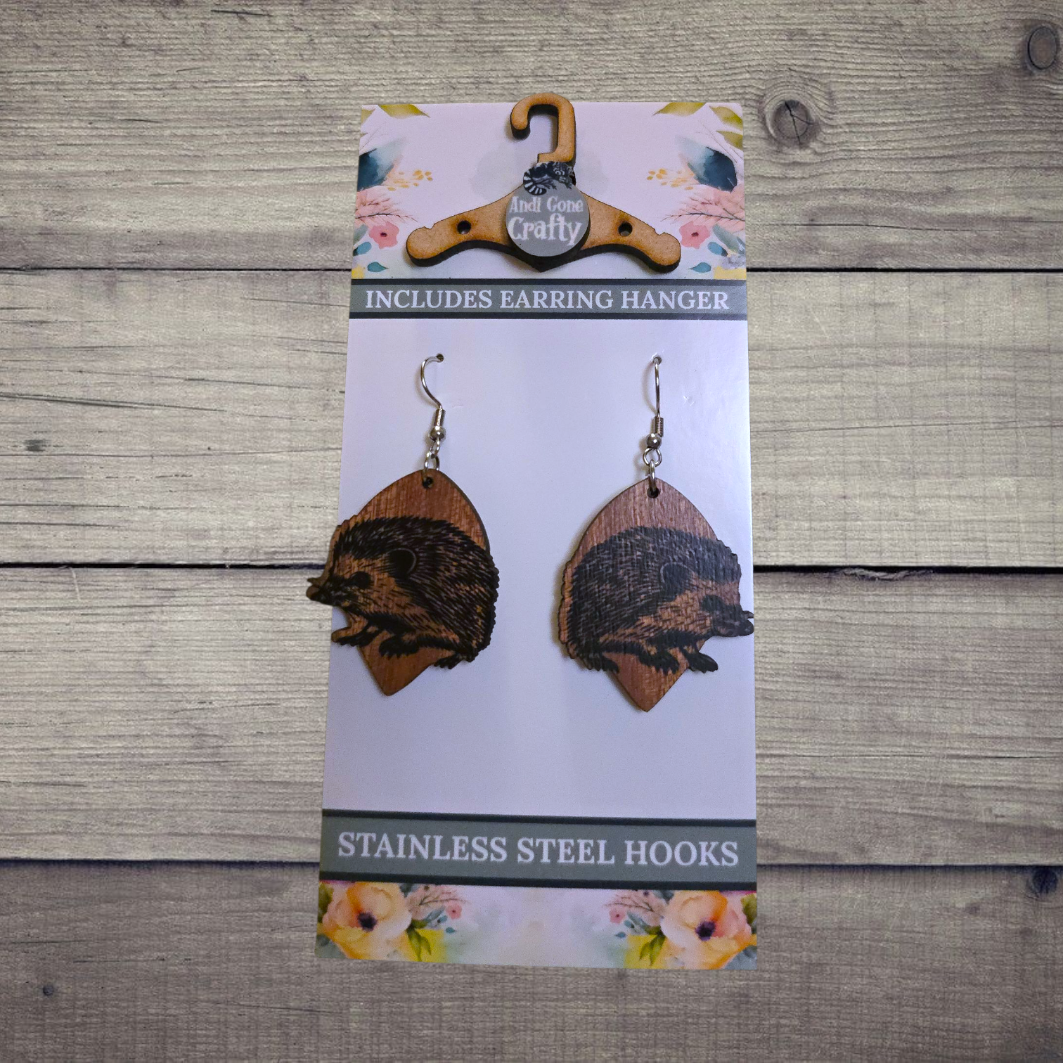 Hedgehog - (Lightweight Wood and Stainless Steel Hooks) - Earring Number 300264