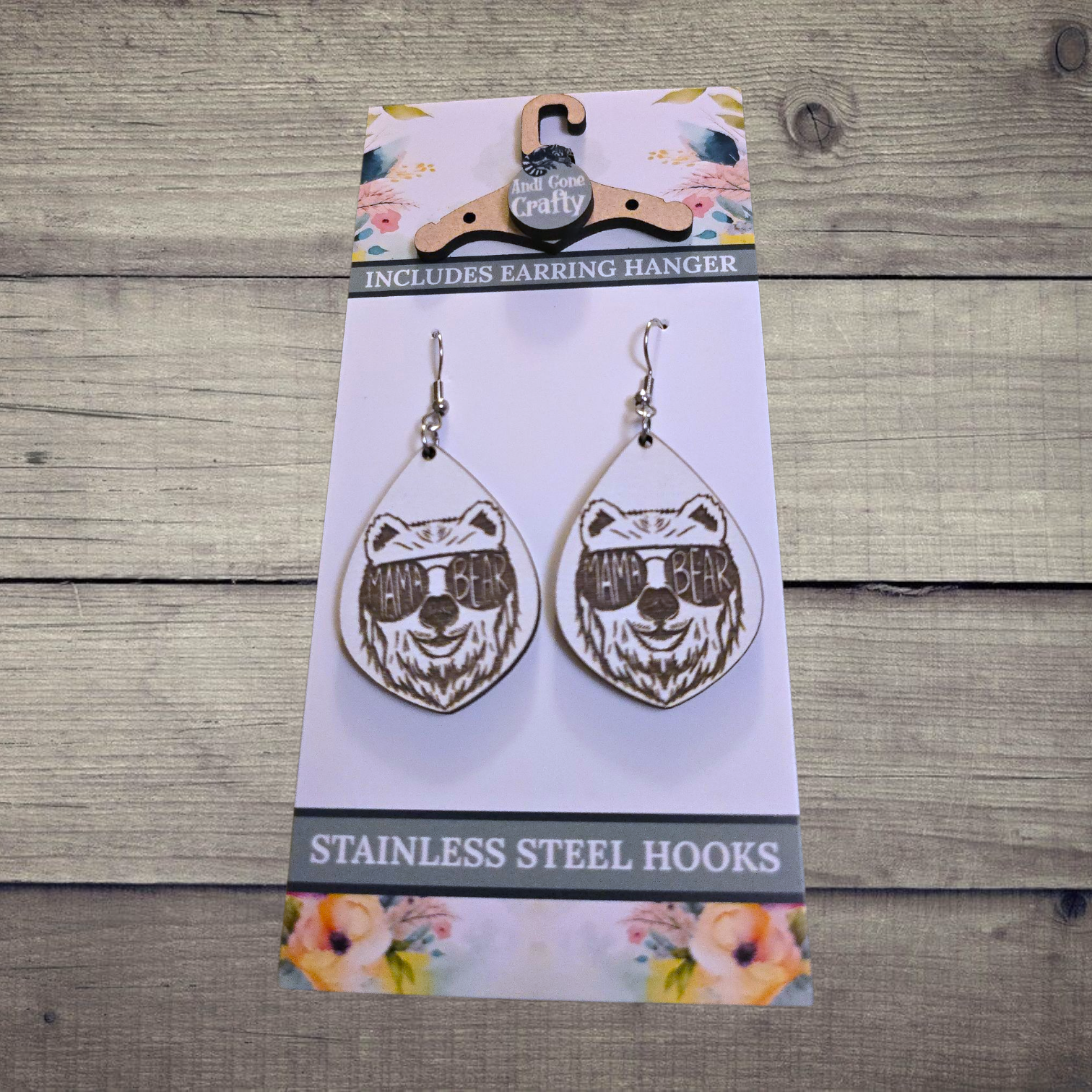 Mama Bear - (Lightweight Wood and Stainless Steel Hooks) - Earring Number 300449