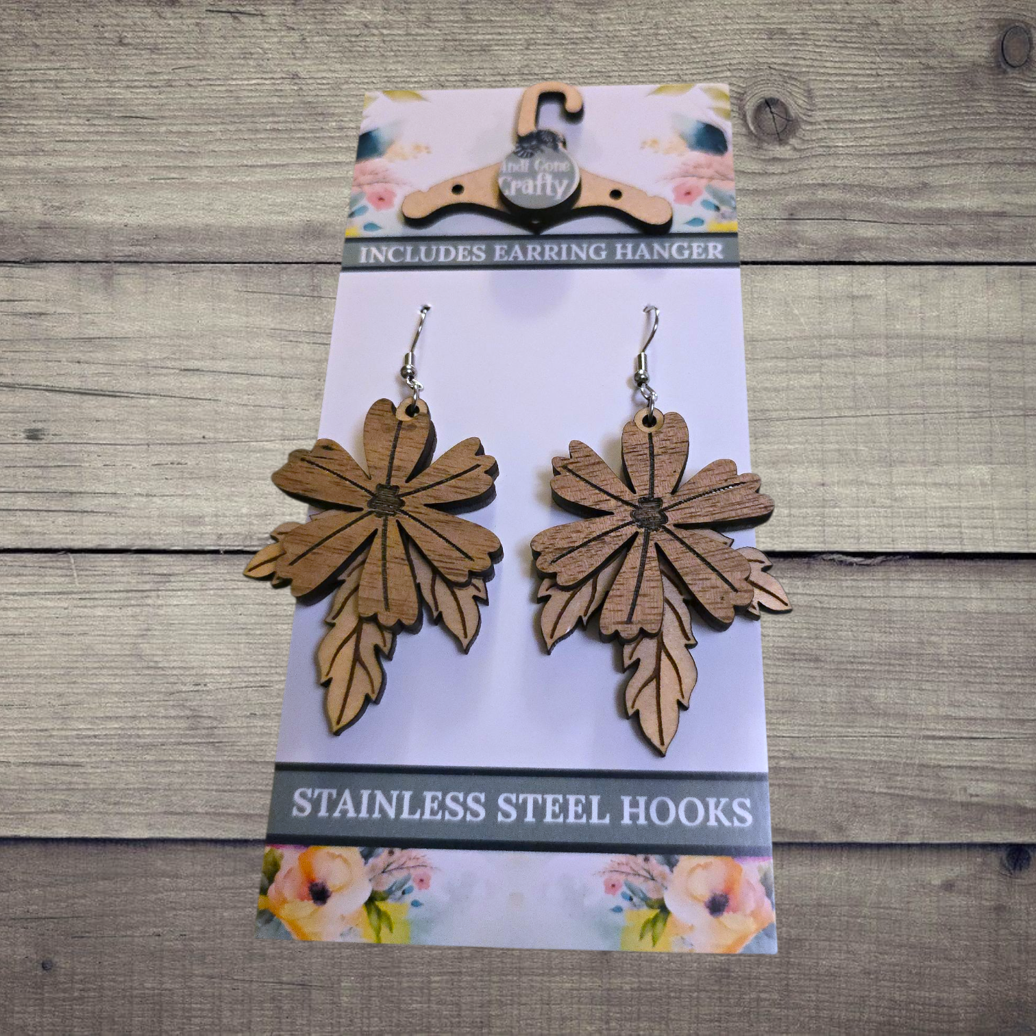 Flower - (Lightweight Wood and Stainless Steel Hooks) - Earring Number 300484