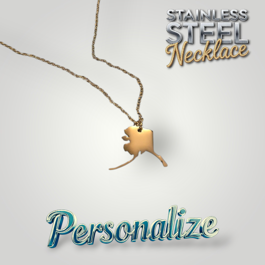 Gold Alaska Necklace - Ready to be Engraved - Premium Stainless Steel Piece #700016